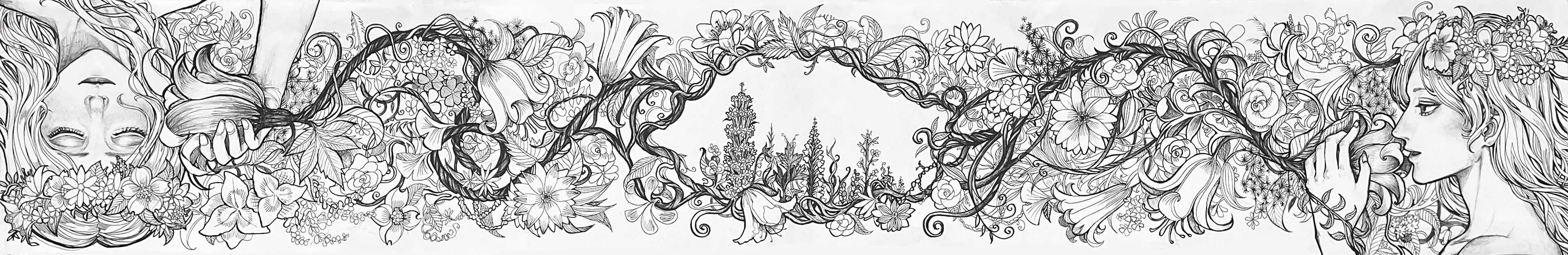 Flowers on You - Nostalgia, 2023, 80" x13", Pen on Paper